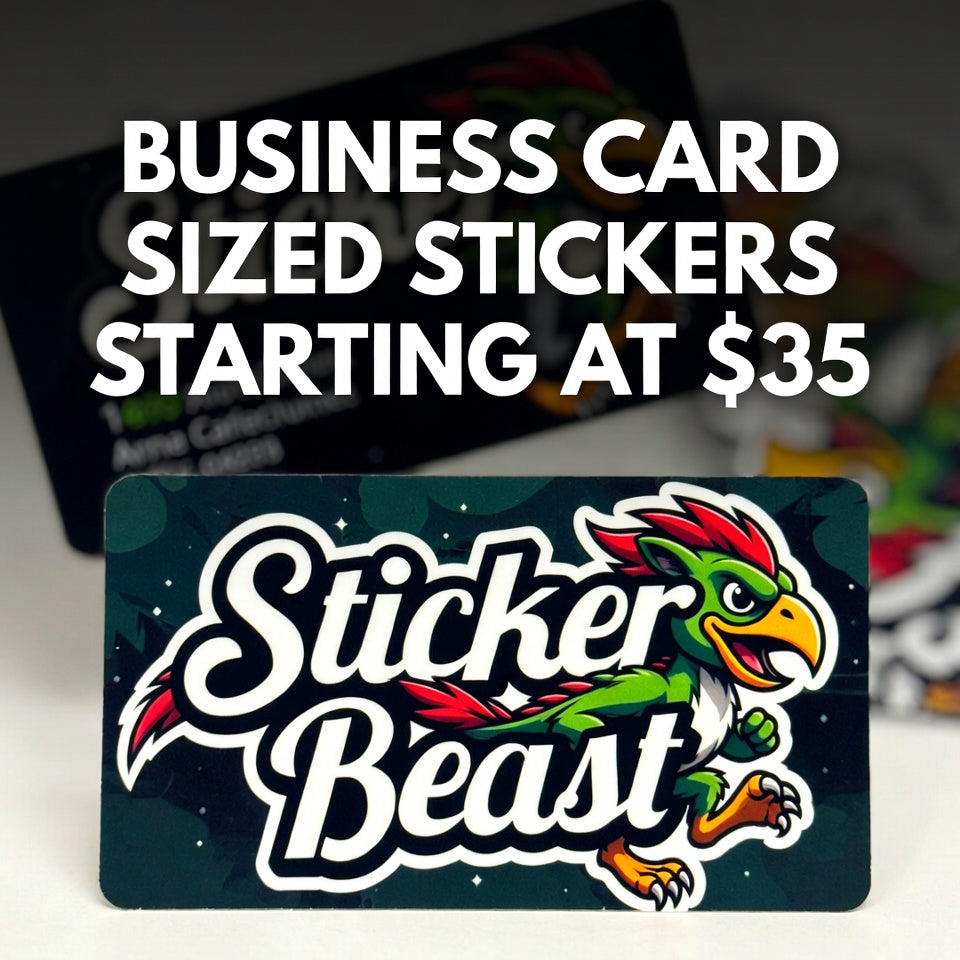 LAS PEGATINAS DURAN MUCHO MÁS TIEMPO. DESTACA DEL RESTO CON PEGATINAS PERSONALIZADAS DEL TAMAÑO DE UNA TARJETA DE PRESENTACIÓN. ¡IDEALES PARA REPARTIR, REGALOS O CUALQUIER COSA!